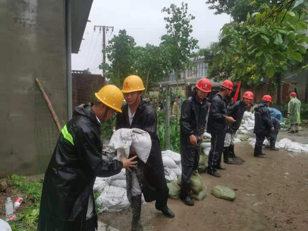 1840分,救援人員抵達現場后,經過相關領導的部署安排后,在第一時間就投入到現場的搶險救援中,爭分奪秒地搬運沙袋,對堤壩缺口進行加固,筑牢安全防線。盡管雨水浸透了衣服,膠鞋灌滿了水,大家依然咬緊牙始終堅持在抗洪一線,經過一個多小時的奮力搶險,附近村莊終于脫離了險情,救援結束后,據當地村委統計分公司人員共計搬運了沙袋500余包用于修復水壩缺口。
