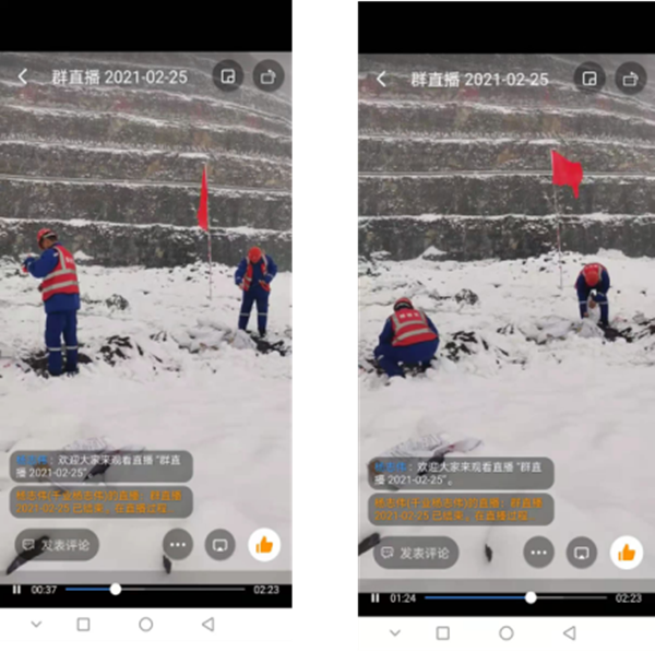 2月24日傍晚,一場(chǎng)瑞雪突然降臨,焦作迎來(lái)了2021年的第一場(chǎng)雪。這一場(chǎng)突如其來(lái)的降雪,給我們?cè)?jì)劃25日的爆破作業(yè)帶來(lái)了挑戰(zhàn)。 25日早,雪已經(jīng)停了,并且氣溫徘徊在零度之上,雖然冷,但道路沒(méi)有結(jié)冰,炸藥運(yùn)輸車也安全準(zhǔn)時(shí)的送達(dá)到了現(xiàn)場(chǎng)。為了順利開(kāi)展爆破作業(yè),馬村分公司的同志們?cè)趧Ⅻh經(jīng)理的帶領(lǐng)下,吃過(guò)早飯后就立即組織進(jìn)入礦山,開(kāi)展工作。爆破工作嚴(yán)格按照規(guī)定及河南省公安廳的要求下進(jìn)行,全部流程都進(jìn)行釘釘直播,留存錄像。 腳踏著皚皚白雪的他們是堅(jiān)守的勇士,哪怕是雪水濕了鞋襪,濕了褲腳,手指被凍得通紅,他們依然嚴(yán)格按照操作規(guī)范,認(rèn)真完成每一個(gè)步驟。 致敬!風(fēng)雪中的礦山人!致敬!所有風(fēng)雪中努力工作的第一線人員! (以下圖片來(lái)源于爆破錄像截圖及釘釘直播截圖)  |