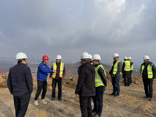 應急局領導及專家組對礦山施工現場的運礦道路、排水溝、安全車檔、基建平臺等進行現場查看驗收。