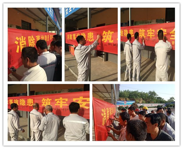 隨后,全體員工在印有“消除事故隱患,筑牢安全防線”安全月活動主題的條幅上,莊重的簽上自己的名字。