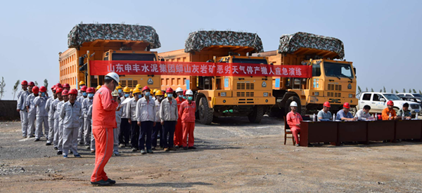棗莊申豐水泥礦山開展惡劣天氣停產撤人應急演練