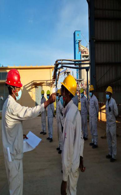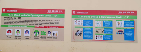為切實做好防疫工作,分公司緊抓人員管控,將管理鏈條向當地雇員延伸,實行封閉式、網格化管理,分區域、分部門進行日常生產和生活,切斷傳播途徑,防止疫情擴散蔓延;嚴格落實防護措施按照當地法律法規安排1/3員工帶薪休假,留守項目維持生產員工每天兩次體溫測量,并發放防疫口罩,每天上下班之前做好施工場所和施工設備的消毒工作,建立安全可控工作環境儲備90天口罩和消毒用品等醫療防護物資以及米面糧油等生活物資做到手中有糧,心中不慌;強化防控宣傳,制作COVID-19宣傳海報和宣傳畫,在中贊方生活區張貼懸掛,通過圖文并茂的方式向員工宣貫病毒的傳播渠道和防范措施;同時加強心理疏導和人文關懷,緩解員工焦慮不安的情緒