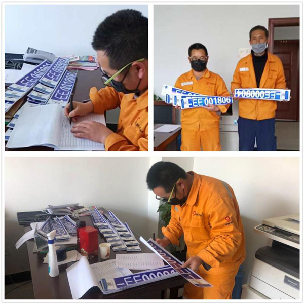 領(lǐng)取環(huán)保標(biāo)識(shí)牌及其卡片后,分公司將申領(lǐng)的非道路移動(dòng)機(jī)械環(huán)保標(biāo)牌張貼于機(jī)械設(shè)備的左右兩側(cè)或機(jī)械尾端、操作手臂等明顯位置。 張貼完畢后要求各設(shè)備管理人員及操作人員必須注意保護(hù)好機(jī)械牌照及環(huán)保信息卡片,避免磕碰污損,以備檢查核驗(yàn)。  今后,萬(wàn)年分公司的非道路移動(dòng)機(jī)械將像機(jī)動(dòng)車(chē)一樣,擁有屬于自己的“身份證”。