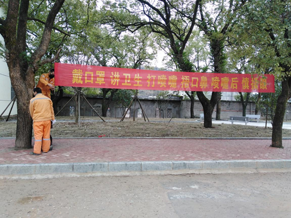 加大宣傳力度,增強員工意識,在微信群分享、張貼宣傳畫的基礎上增設懸掛條幅、向員工分發防控手冊等措施。
