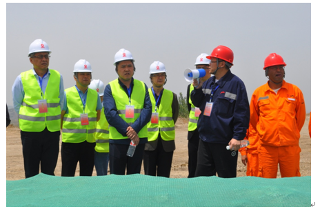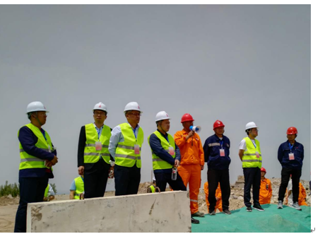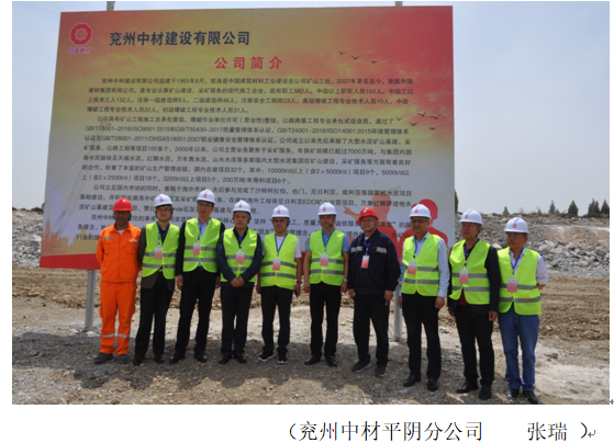 5月6日,吉林天池鉬業有限公司領導在平陰山水水泥有限公司,黨委書記侯福存、兗州中材建設有限公司總經理柯升、副總經理張蘭青的陪同下,蒞臨兗州中材平陰分公司礦山施工現場參觀指導。