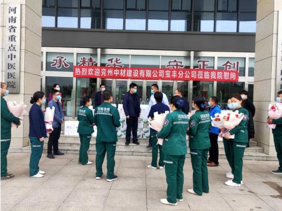 寶豐分公司經(jīng)理親切地將精心準備的鮮花送到護士的手中,并再次對醫(yī)護人員表示慰問,祝愿全體醫(yī)護人員及家人身體健康,致敬這些走在抗擊疫情一線的最美“白衣天使”。
