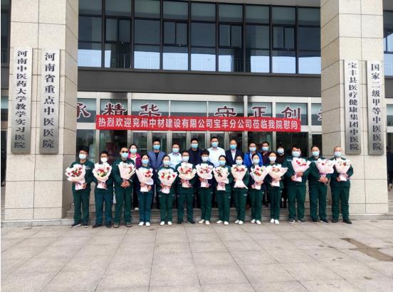 最后,寶豐分公司領(lǐng)導與中醫(yī)院領(lǐng)導、醫(yī)護人員合影留念,共同承載著醫(yī)企的執(zhí)著、勇氣和擔當,攜手抗擊疫情,為人民健康保駕護航!