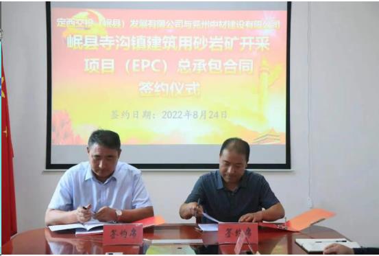 8月24日上午,定西交投(岷縣)發展有限公司與兗州中材建設有限公司簽署岷縣寺溝鎮建筑用砂巖礦開采項目(EPC)總承包合作協議,在岷縣投資建設綠色、環保礦石開采加工生產線。