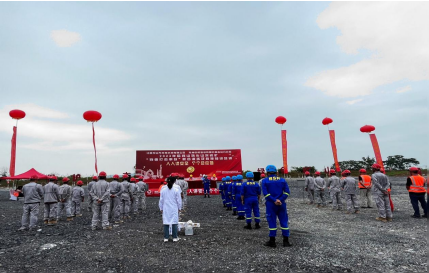 演練開始,總指揮張鵬收到現場有發生塊石滾落,造成現場技術員腿部受傷請求救援的緊急報告,立即下達指令啟動分公司應急預案,并對本次救援進行全面組織部署,對分公司警戒保衛組、搶先救援組、醫療救護組、通訊聯絡組等下達指令,各小組在接到指令后立即響應應急預案,第一時間到達事故發生地,按秩序組織搶險救援,對傷員進行緊急救治并對事故發生地進行警戒隔離。