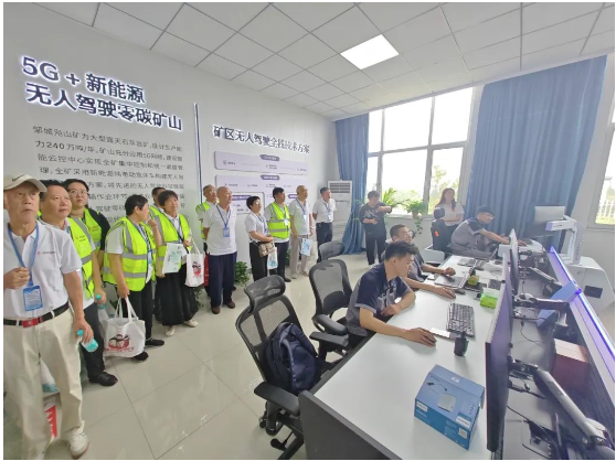 啟動儀式后,全體人員走進(jìn)兗州中材鄒城分公司,親身感受兗州中材近年來的發(fā)展變化。在講解員的帶領(lǐng)下,全體人員依次參觀辦公樓無人駕駛云控中心、骨料生產(chǎn)線中控室、礦山180觀景平臺觀摩無人駕駛運(yùn)輸,近距離了解兗州中材在生態(tài)環(huán)保、綠色發(fā)展、礦山開采、智能制造等方面取得的成績。