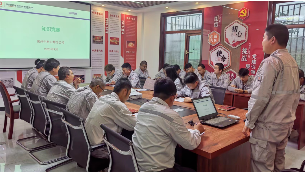 | 為深入學習貫徹黨的二十大精神,團結(jié)動員廣大職工群眾立足崗位、主動擔當,務(wù)實作為、聚力攻堅,推動公司2023年度工作目標任務(wù)完成。9月19日下午,白坪分公司開展“六比六保六爭取”知識競賽活動,項目經(jīng)理宋道明主持競賽。