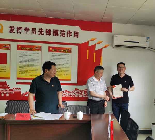 會議宣布后,王中秋同志代表公司黨委向李力同志表示祝賀,并向李力同志頒發了黨員政治生日賀卡。李力同志向大會表達了自身的想法與決心,不忘初心跟黨走,在今后的學習工作中,堅定目標、嚴格要求自身,努力改正現有不足,積極向優秀共產黨員學習樹立先鋒模范作用。