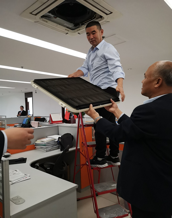 為扎實(shí)開(kāi)展“不忘初心 牢記使命”主題教育,充分發(fā)揮黨先鋒模范作用,11月11日,濟(jì)南支部開(kāi)展 “不忘初心 牢記使命”主題教育黨員志愿服務(wù)活動(dòng)。支部書(shū)記高金軒同志帶領(lǐng)黨員全面清洗辦公區(qū)空調(diào)過(guò)濾網(wǎng)。經(jīng)過(guò)一個(gè)夏天的使用,空調(diào)進(jìn)風(fēng)口格柵和過(guò)濾網(wǎng)已經(jīng)布滿灰塵,同志們不怕臟不怕累,挨個(gè)拆卸、清洗、擦拭、晾曬,將每個(gè)過(guò)濾網(wǎng)清洗的潔凈如新。