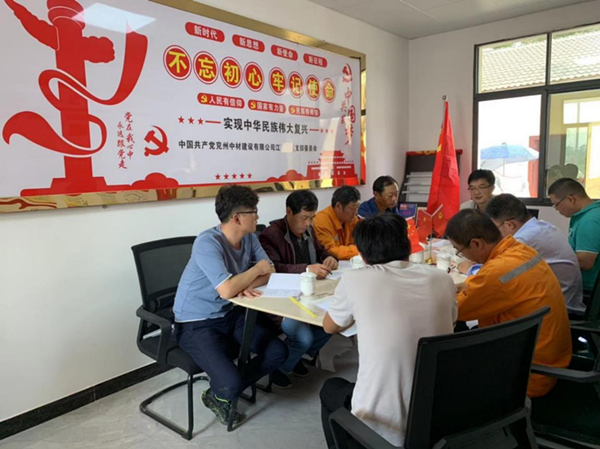 按照中材礦山建設有限公司黨委對“不忘初心、牢記使命”主題教育的部署和公司黨委的安排,1018日,兗州中材副總經理、黨委委員張蘭青在玉山與江西郴州黨支部的黨員和積極分子就“不忘初心,牢記使命”組織了黨課學習。來自瑞金、郴州、萬年和玉山項目的黨員和積極分子共九人參加了這次活動,由片區黨支部書記姜嵩主持。