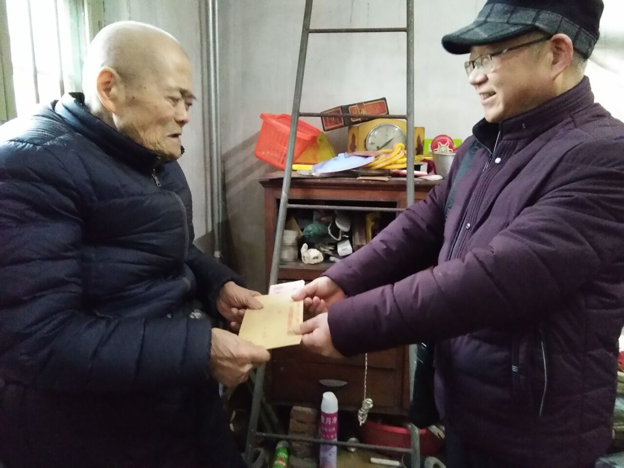 2018年2月2日下午,天氣晴朗,寒風勁吹,兗州中材建設有限公司黨群部主任姜智彥和共產黨員郭建喜兩人,代表兗州區黨委、鼓樓街道黨工委、兗州中材建設有限公司黨委到退休黨員金寶銀家走訪慰問。聽到敲門聲,金寶銀老工人問:誰呀!“黨組織派我們看你來了”!我們回答道。金寶銀老工人摸到門把,打開門,激動地說:“謝謝黨組織、謝謝領導來看我,我可高興啦!”金寶銀老工人今年85歲高齡了,常年疾病在身,生活靠女兒照顧。當我們把500元慰問金交給他時,他表示:我不困難,我不要,我不給黨添麻煩。新春佳節快到了,這是黨組織對您的一點關懷,請您老人家收下吧!在我們的一再勸說下,金寶銀老工人慢慢收下慰問金,感動地滿眼淚花!