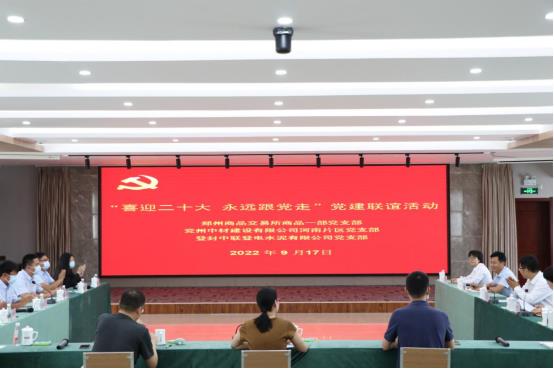 為進(jìn)一步深化黨建聯(lián)建共建,凝聚發(fā)展合力,9月17日上午,河南片區(qū)黨支部代表赴登封中聯(lián)登電水泥有限公司與登封中聯(lián)登電水泥黨支部、鄭州商品交易所商品一部黨支部開展黨建聯(lián)誼活動(dòng)。