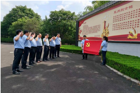 “我志愿加入中國共產黨,擁護黨的綱領,遵守黨的章程,履行黨員義務……”。在烈士陵園內,全體黨員干部高舉右手,面向鮮紅黨旗,重溫入黨誓詞,來回顧入黨時的莊嚴承諾,時刻提醒自己肩負的神圣使命。