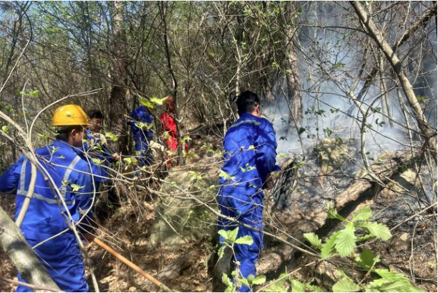 清明將至,當地村民焚香燒紙祭祀,造成飛火引起了火災。因起火點位于山地深處,遠離公路,滅火任務困難,距離水源較遠,在項目副經理向孝陽同志和安全副經理張目利同志的帶領下,大家紛紛拿起鐵鍬、釘耙等工具,前往起火點,清理易燃物,鏟土澆蓋火星子,為下一步工作做好鋪墊,終于在大家的努力下,水源送到了山頂,火情被一一撲滅。